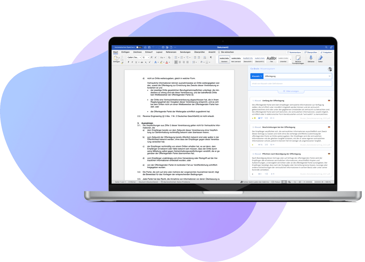 Nutzen Sie das Potenzial Ihres internen Kanzleiwissens, um Verträge effizienter zu erstellen und zu prüfen. Durch unsere KI-Lösungen werden Prozesse optimiert, Fehler reduziert und wertvolle Zeit gespart.